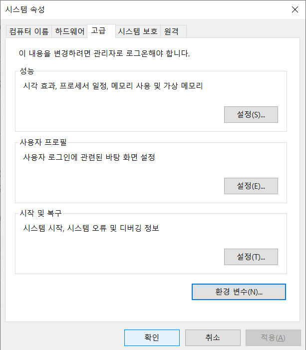 Windows O/S 환경설정