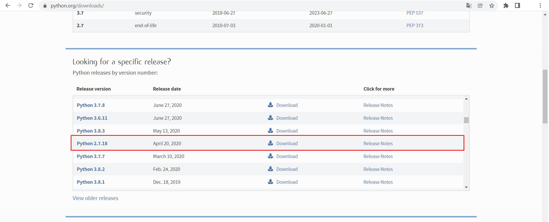 Python2 다운로드를 위해 파이선 홈페이지로 이동
